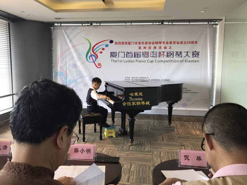 7月14日-15日,厦门市首届“鹭岛杯”钢琴大赛拉开帷幕,500多名来自福建省各地的选手,在琴岛展开一场琴艺的角逐!“哈曼尼”钢琴作为此次比赛用琴,集“德国六角琴弦、红木榔头、镶嵌式弦枕、高音双泛音”等工艺专利于一身,尽显其高贵品质。比赛前后,由国家一级调音师江伟先生亲自调试,更让这台名琴的音色锦上添花。选手们的精彩表现,不少人才脱颖而出。而哈曼尼钢琴的助阵,也为比赛的顺利进行增色不少,得到大家一致地好评与认可!担任评委的福师大音乐学院倪林教授,也饶有兴致的弹奏哈曼尼,并演绎了多种迥然不同的曲风,人琴合一的演奏获得现场阵阵欢呼与掌声!