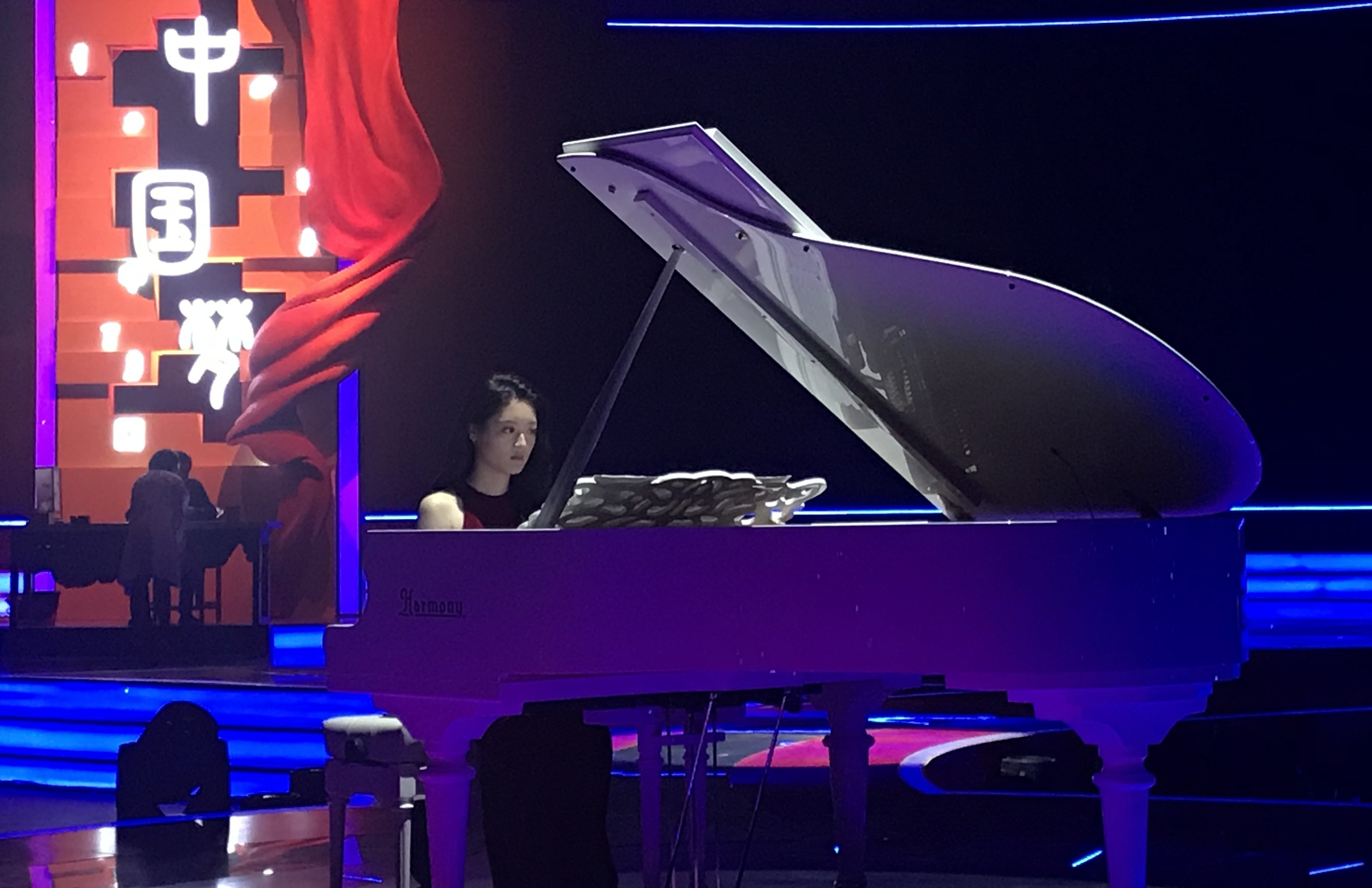 晚会现场节目精彩纷呈,引起观众的阵阵掌声。哈曼尼钢琴作为晚会独家指定用琴大放异彩,其中的钢琴独奏表演,更是将晚会的氛围推向高潮。青年女钢琴家用哈曼尼钢琴现场弹奏,精湛的弹奏技巧配上哈曼尼钢琴完美的音质,让听众们沐浴在美妙的音乐海洋里。