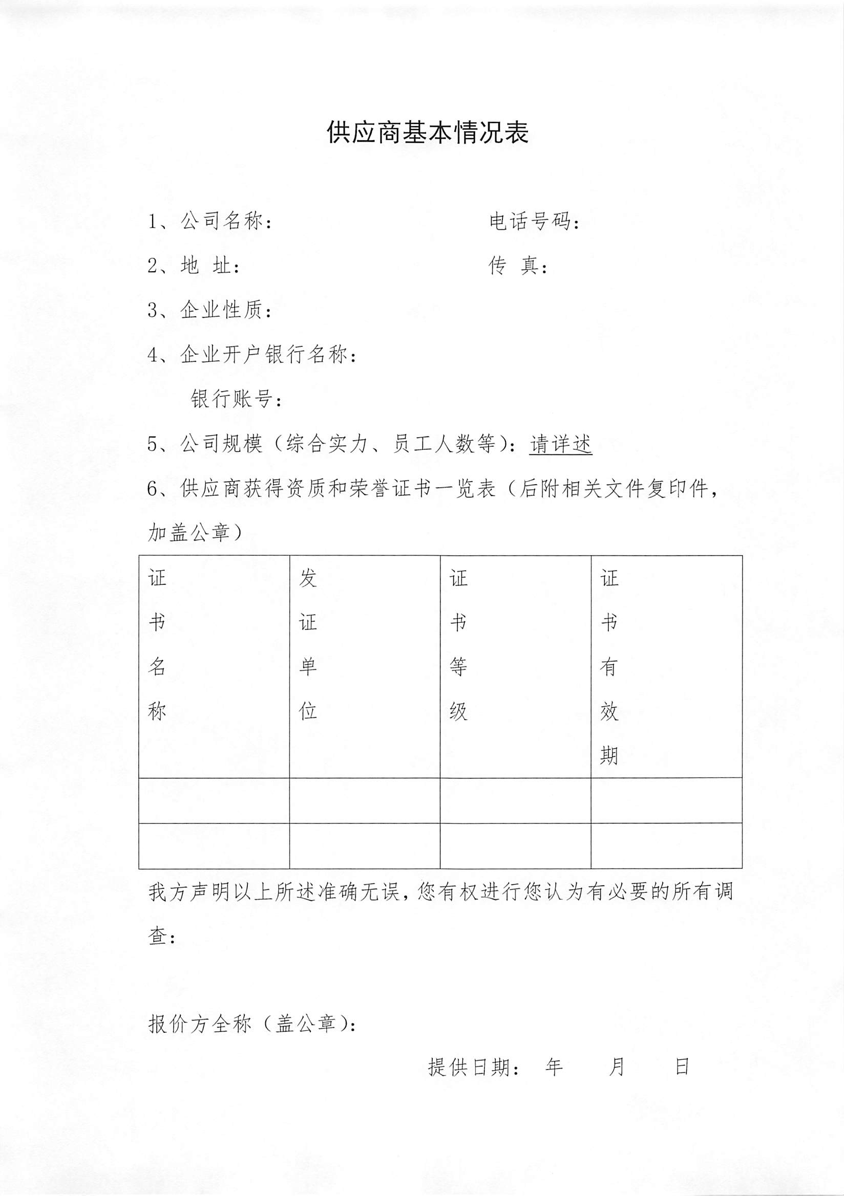 五、本项目公告未明确事项,按采购询价函及相关采购文件执行。供方响应报价即为认同本项目所有文件中的约定,本项目报价文件为报价方免费提供,无论成交与否,均默认授权由询价方自行处理,不作退回。