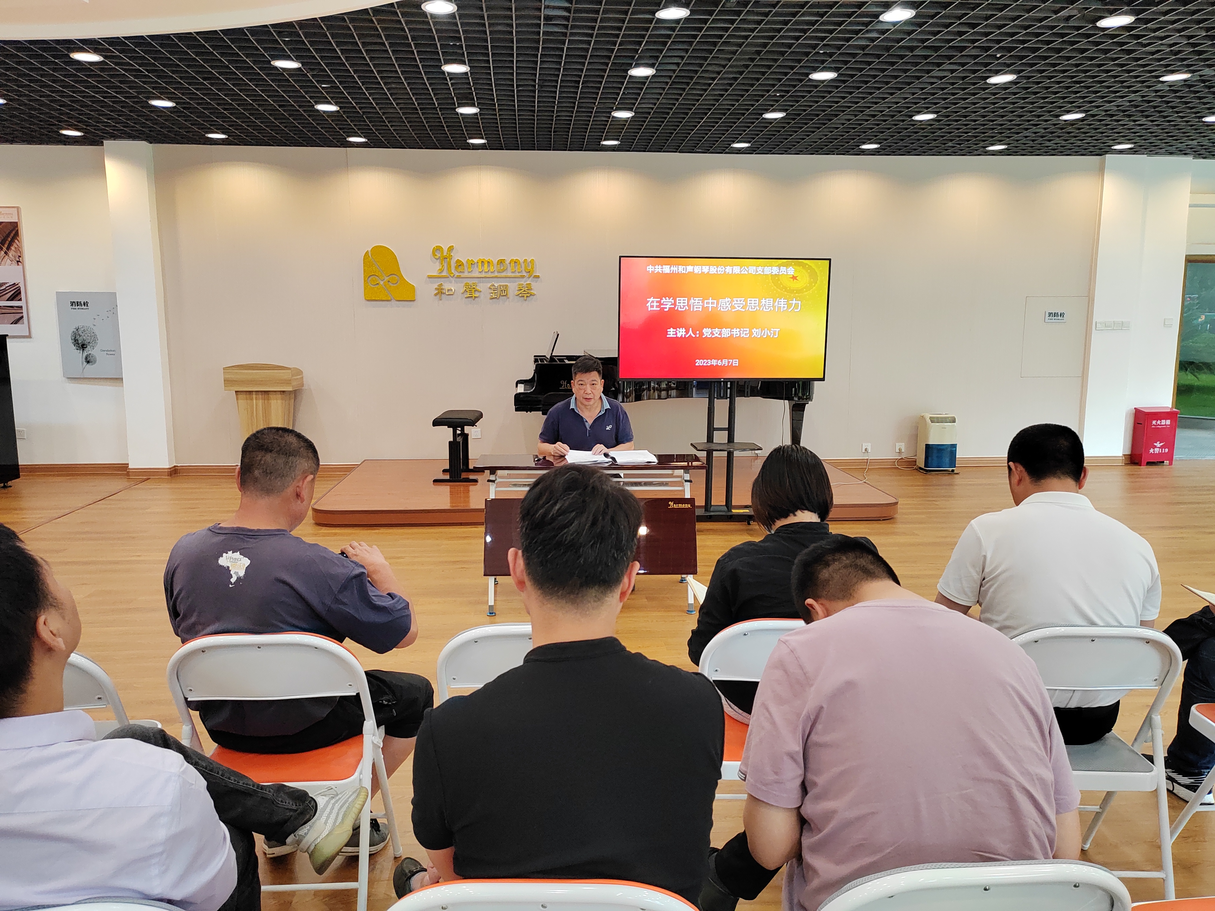 为深入学习贯彻习近平新时代中国特色社会主义思想和党的二十大精神,牢牢把握主题教育“学思想、强党性、重实践、建新功”的总要求,教育引导公司广大职工、党员干部凝心铸魂、锤炼品格、实干担当、践行宗旨、廉洁奉公。和声钢琴公司党支部6月7日下午开展支部书记讲党课活动。